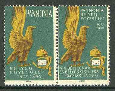 Cinderella - Pannonia 1942 Eagle & posthorn se-tenant pair with green background unmounted mint