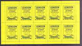 Exhibition souvenir sheet for 1960 London International Stamp Exhibition containing 10 perf labels in yellow unmounted mint