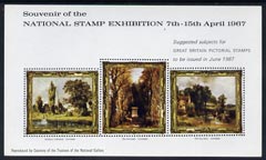Exhibition souvenir sheet for 1967 National Stamp Exhibition showing 3 paintings by Constable unmounted mint