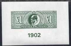 Great Britain 1902 KEVII £1 green fine facsimile imperf on gummed paper (as SG 266/320) unmounted mint