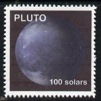 Planet Pluto (Fantasy) 100 solars perf label for inter-galactic mail unmounted mint on ungummed paper with white border