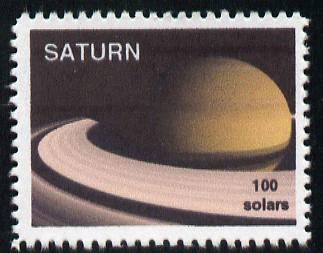 Planet Saturn (Fantasy) 100 solars perf label for inter-galactic mail unmounted mint on ungummed paper with white border