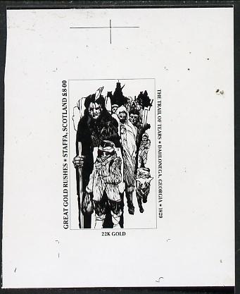 Staffa 1981 Great gold Rushes £8 The Trail of Tears (vertical) - B&W bromide proof of yssued design as Rosen SF 1010