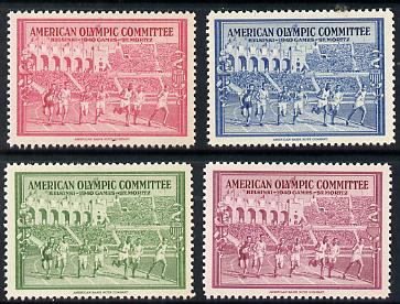 United States 1940 Olympic Fund perf labels in red, green, blue and purple produced by ABNCo unmounted mint