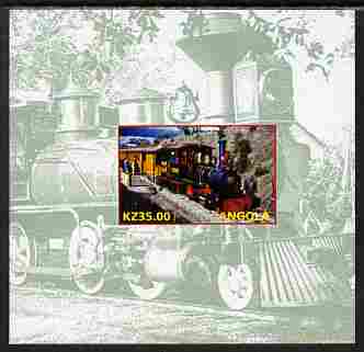 Angola 2001 Walt Disney Railraod #01 individual imperf sheet with country name & value in yellow, background in green, unmounted mint