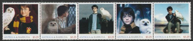 Antigua & Barbuda unissued Harry Potter perforated strip of 5 essays produced on official blank stamp paper unmounted mint, apparently no more than 15 strips exist. Slight offset on gummed side