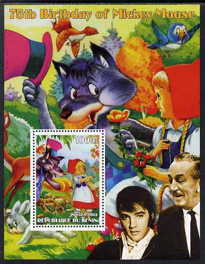 Benin 2003 75th Birthday of Mickey Mouse - Little Red Riding Hood #01 (also shows Elvis & Walt Disney) perf m/sheet unmounted mint. Note this item is privately produced and is offered purely on its thematic appeal