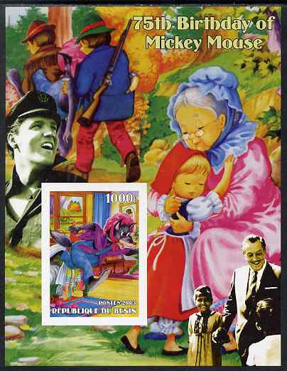 Benin 2003 75th Birthday of Mickey Mouse - Little Red Riding Hood #02 (also shows Elvis & Walt Disney) imperf m/sheet unmounted mint. Note this item is privately produced and is offered purely on its thematic appeal