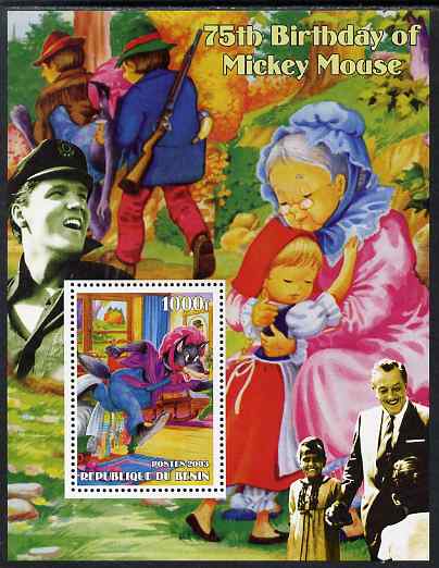 Benin 2003 75th Birthday of Mickey Mouse - Little Red Riding Hood #02 (also shows Elvis & Walt Disney) perf m/sheet unmounted mint. Note this item is privately produced and is offered purely on its thematic appeal
