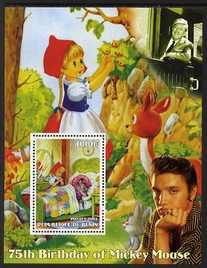 Benin 2003 75th Birthday of Mickey Mouse - Little Red Riding Hood #04 (also shows Elvis & Walt Disney) perf m/sheet unmounted mint. Note this item is privately produced and is offered purely on its thematic appeal