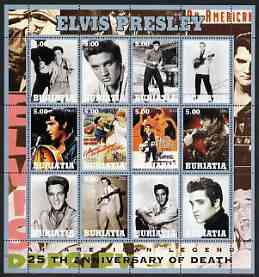 Buriatia Republic 2002 Elvis Presley 25th Death Anniversary #1 perf sheetlet containing set of 12 values unmounted mint