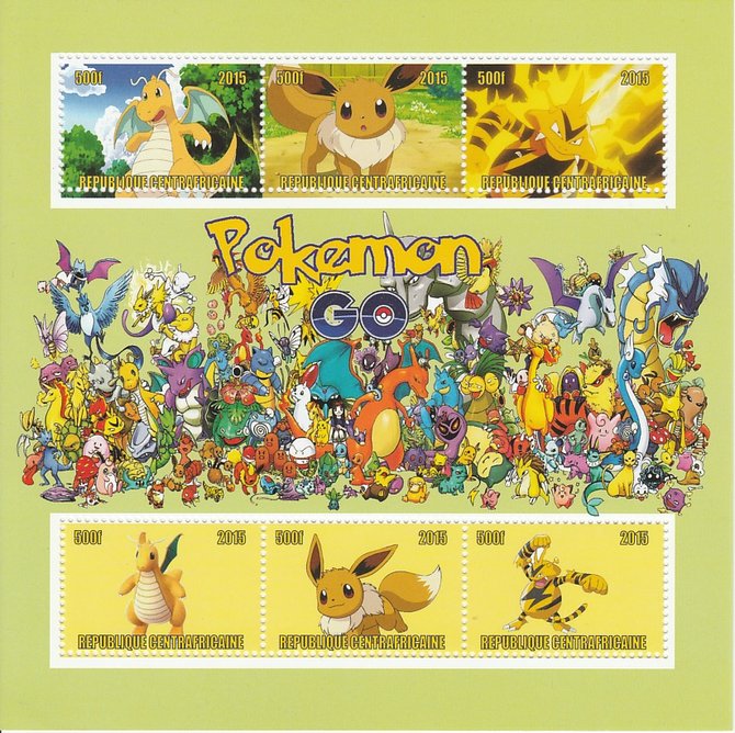 Central African Republic 2015 Pokemon #4 (green background) perf sheetlet containing 6 values unmounted mint. Note this item is privately produced and is offered purely on its thematic appeal