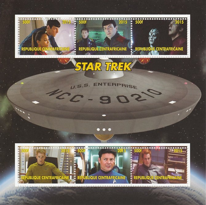 Central African Republic 2015 Star Trek #1 perf sheetlet containing 6 values unmounted mint. Note this item is privately produced and is offered purely on its thematic appeal