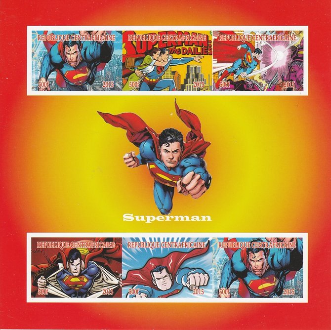 Central African Republic 2015 Superman imperf sheetlet containing 6 values unmounted mint. Note this item is privately produced and is offered purely on its thematic appeal