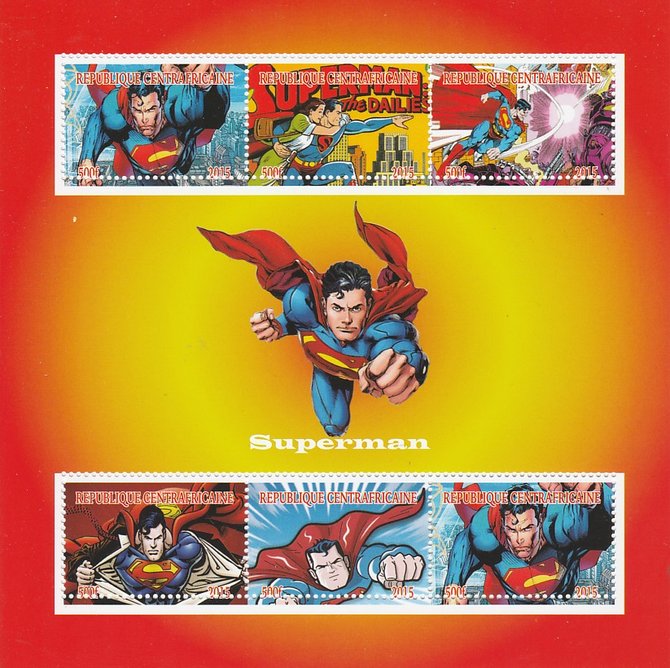 Central African Republic 2015 Superman perf sheetlet containing 6 values unmounted mint. Note this item is privately produced and is offered purely on its thematic appeal