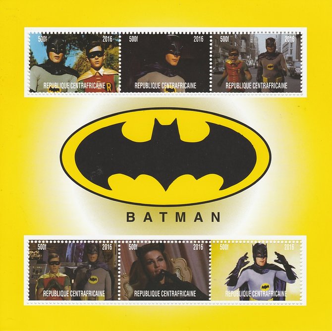 Central African Republic 2016 Batman perf sheetlet containing 6 values unmounted mint. Note this item is privately produced and is offered purely on its thematic appeal