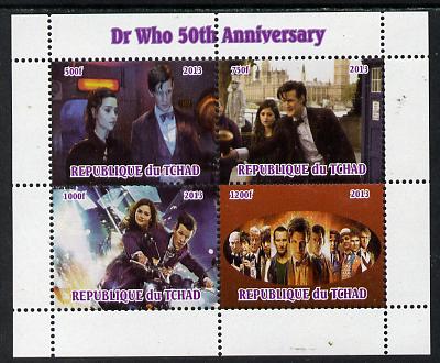 Chad 2013 Dr Who 50th Anniversary perf sheetlet containing 4 vals unmounted mint. Note this item is privately produced and is offered purely on its thematic appeal.