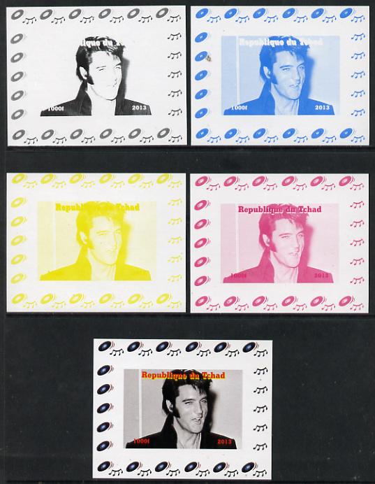 Chad 2013 Elvis Presley #03 individual deluxe sheetlet - the set of 5 imperf progressive colour proofs comprising the 4 basic colours plus all 4-colour composite unmounted mint.