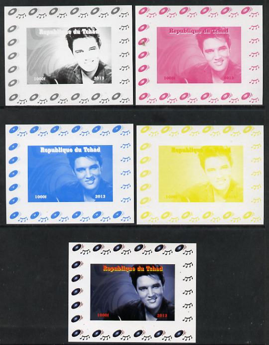 Chad 2013 Elvis Presley #10 individual deluxe sheetlet - the set of 5 imperf progressive colour proofs comprising the 4 basic colours plus all 4-colour composite unmounted mint.