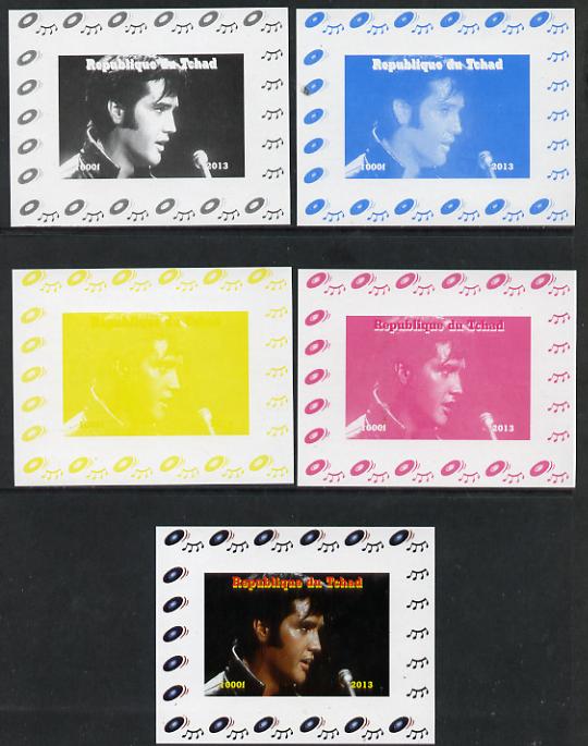 Chad 2013 Elvis Presley #11 individual deluxe sheetlet - the set of 5 imperf progressive colour proofs comprising the 4 basic colours plus all 4-colour composite unmounted mint.