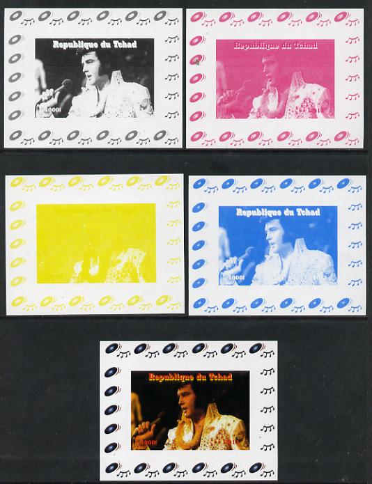 Chad 2013 Elvis Presley #12 individual deluxe sheetlet - the set of 5 imperf progressive colour proofs comprising the 4 basic colours plus all 4-colour composite unmounted mint.
