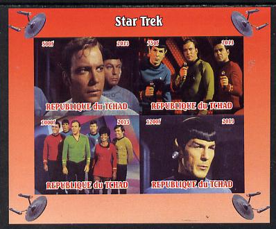 Chad 2013 Star Trek #1 imperf sheetlet containing 4 vals unmounted mint. Note this item is privately produced and is offered purely on its thematic appeal.