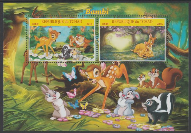 Chad 2016 Disney's Bambi perf sheetlet containing 2 values unmounted mint.,Note this item is privately produced and is offered purely on its thematic appeal