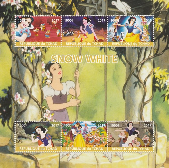 Chad 2017 Disney's Snow White perf sheetlet containing 6 values unmounted mint. Note this item is privately produced and is offered purely on its thematic appeal. .