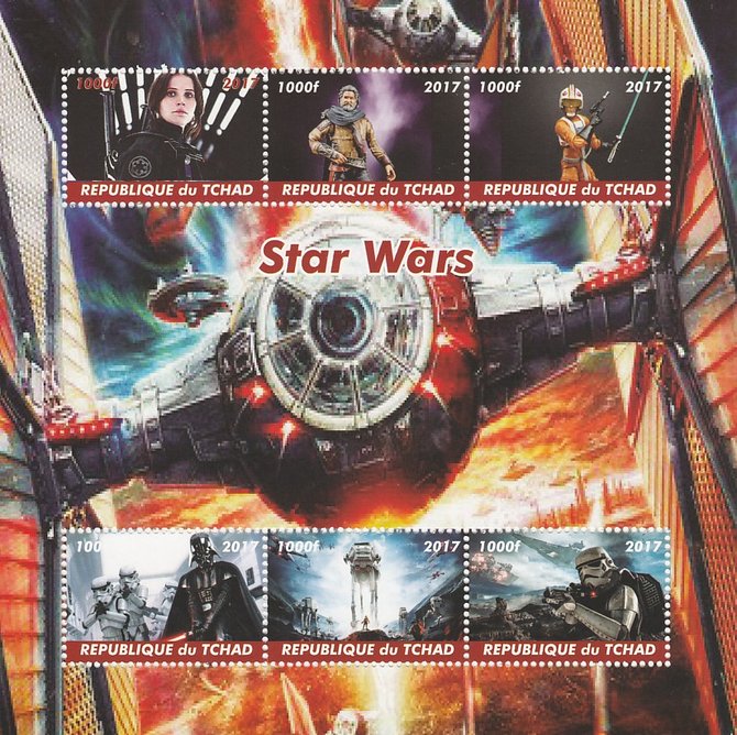 Chad 2017 Star Wars perf sheetlet containing 6 values unmounted mint. Note this item is privately produced and is offered purely on its thematic appeal. .