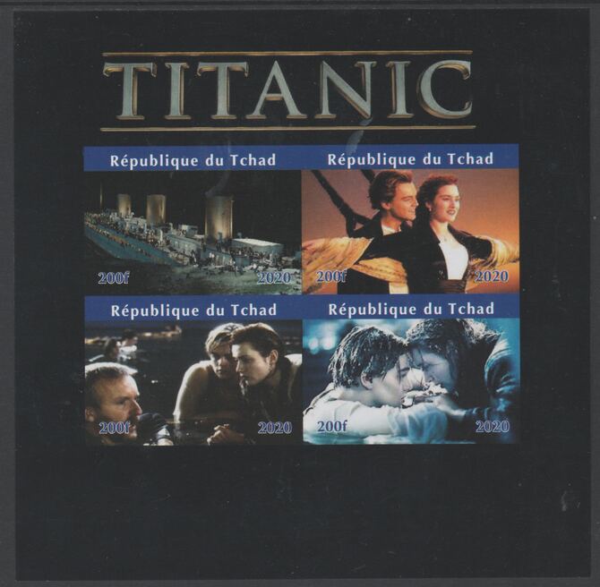 Chad 2020 Titanic (Film) imperf sheetlet containing 4 values unmounted mint. Note this item is privately produced and is offered purely on its thematic appeal