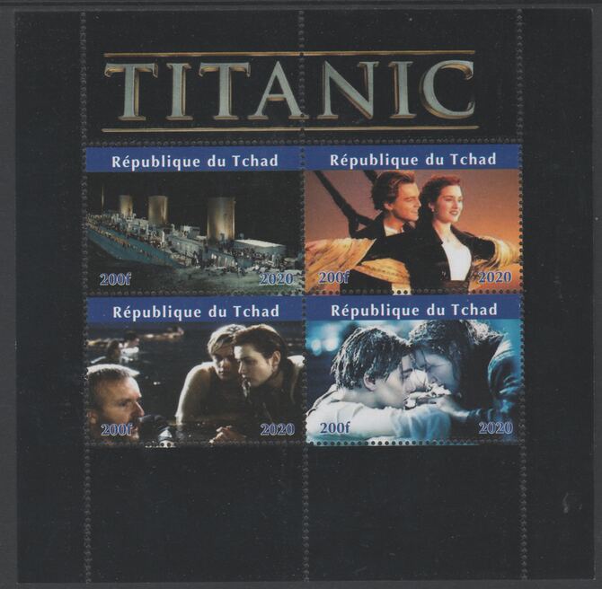 Chad 2020 Titanic (Film) perf sheetlet containing 4 values unmounted mint. Note this item is privately produced and is offered purely on its thematic appeal