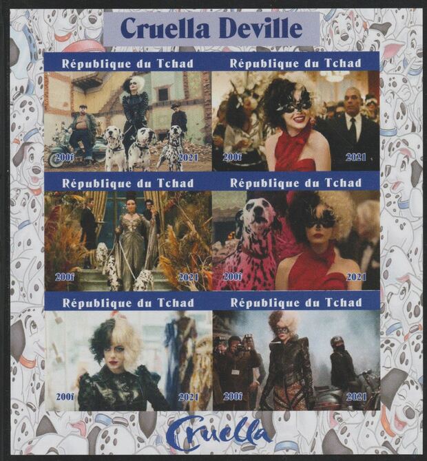 Chad 2021 Cruella De Vil imperf sheet containing 6 values unmounted mint