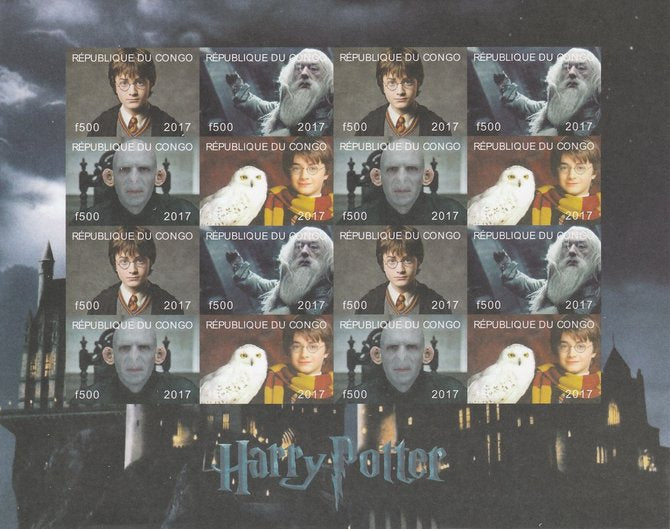 Congo 2017 Harry Potter #1 imperf sheetlet containing 16 values (4 setenant blocks of 4) unmounted mint Note this item is privately produced and is offered purely on its thematic appeal, it has no postal validity