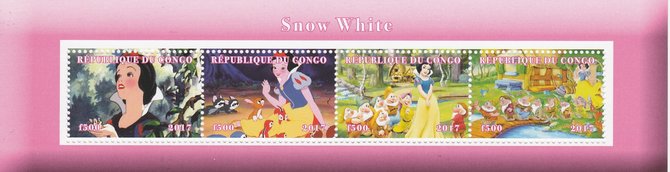 Congo 2017 Snow White perf sheetlet containing 4 values unmounted mint. Note this item is privately produced and is offered purely on its thematic appeal