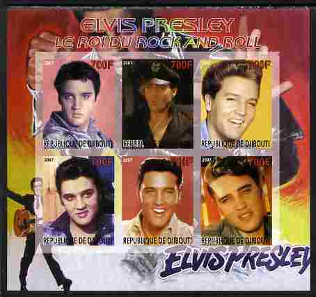 Djibouti 2007 Elvis Presley - King of Rock 'n' Roll #1 imperf sheetlet containing 6 values unmounted mint. Note this item is privately produced and is offered purely on its thematic appeal