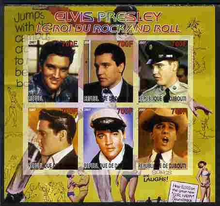 Djibouti 2007 Elvis Presley - King of Rock 'n' Roll #2 imperf sheetlet containing 6 values unmounted mint. Note this item is privately produced and is offered purely on its thematic appeal