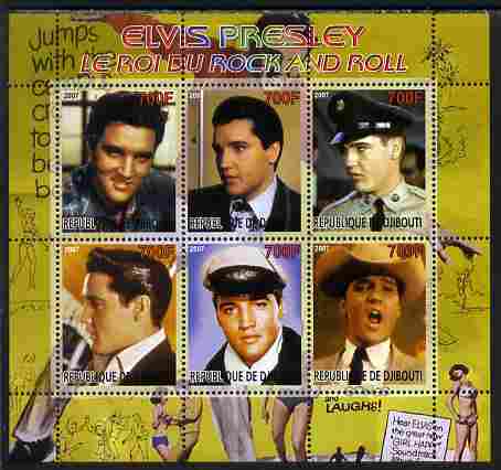 Djibouti 2007 Elvis Presley - King of Rock 'n' Roll #2 perf sheetlet containing 6 values unmounted mint. Note this item is privately produced and is offered purely on its thematic appeal
