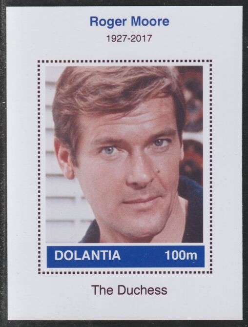 Dolantia (Fantasy) Roger Moore imperf deluxe sheetlet on glossy card (75 x 103 mm) unmounted mint