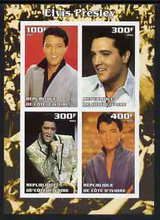 Ivory Coast 2003 Elvis Presley #1 imperf sheetlet containing 4 values, unmounted mint