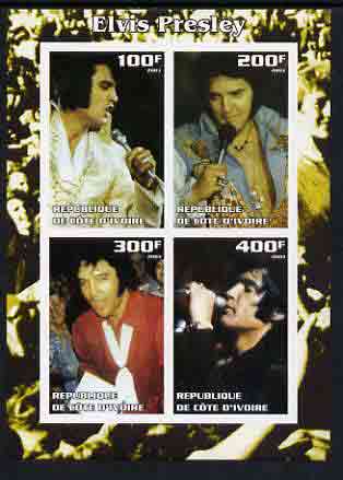 Ivory Coast 2003 Elvis Presley #2 imperf sheetlet containing 4 values, unmounted mint