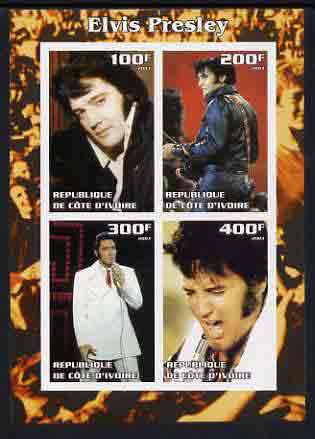 Ivory Coast 2003 Elvis Presley #3 imperf sheetlet containing 4 values, unmounted mint