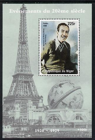 Niger Republic 1998 Events of the 20th Century 1920-1929 Birth of Walt Disney's Mickey Mouse perf souvenir sheet unmounted mint. Note this item is privately produced and is offered purely on its thematic appeal