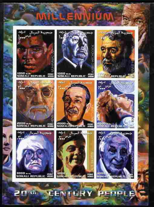 Somalia 2000 Millennium - 20th Century People #4 imperf sheetlet containing set of 9 values unmounted mint. Note this item is privately produced and is offered purely on its thematic appeal