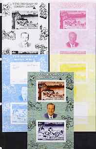 Somalia 2004 75th Birthday of Mickey Mouse #22 - Fire Station sheetlet containing 2 values plus,the set of 5 imperf progressive proofs comprising the 4 individual colours plus all 4-colour composite, unmounted mint