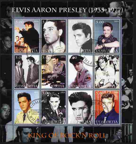 Udmurtia Republic 2004 Elvis Presley perf sheetlet #1 containing set of 12 values (King of Rock & Roll) fine cto used