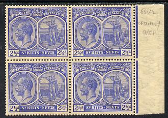 St Kitts-Nevis 1921-29 KG5 Script CA Columbus 2.5d bright blue block of 4, unmounted mint light toning SG 42