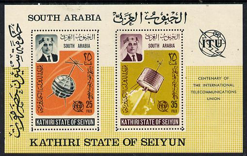 Aden - Kathiri 1966 ITU Centenary perf m/sheet containing 25f & 35f unmounted mint Mi BL 1A