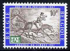 Belgium 1967 Telecommunications Day - opt on Stamp Day (19th cent Postman) unmounted mint, SG 2021