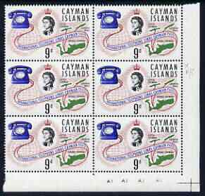 Cayman Islands 1966 International Telephone Links 4d unmounted mint plate block of 6 including R11/5 flaw by second 's' of 'Islands', Shelly V41 (SG 198var)