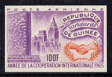 Guinea - Conakry 1965 International Co-operation Year 100f imperf proof in orange & violet on gummed paper, as SG 504